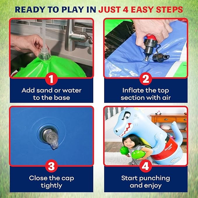 Freestanding Punching Bag – Keep your child entertained with our amazing kids punching bag. This boxing bag for kids features an approximately 4 feet tall inflatable dinosaur. The base of this punching bag can be filled with either sand or water to keep it intact after getting punched or kicked energetically.