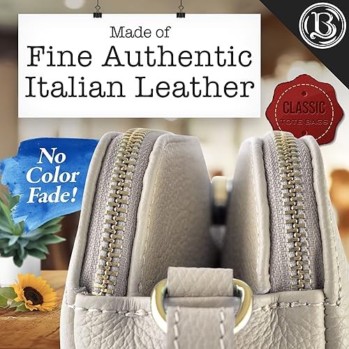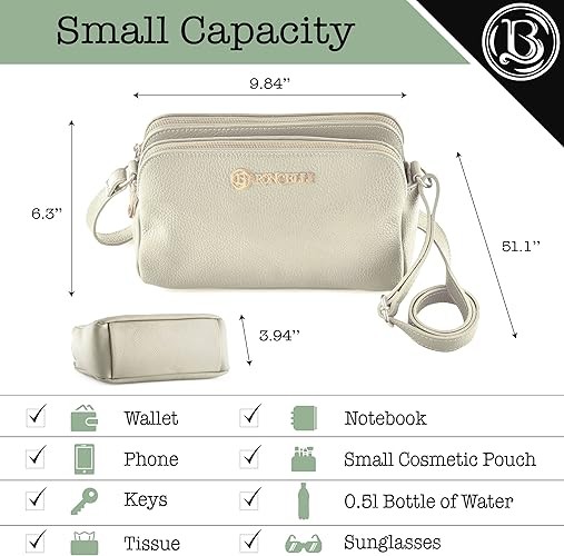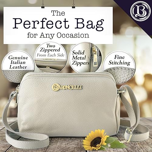 - This genuine beige leather Italian designer crossbody purse creates an easy finishing touch to your look. The slim profile offers enough space while keeping your look elegant. All day's n style with the Crossbody Purse from BARONCELLI.