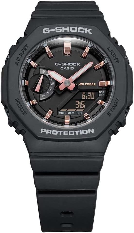 Design Features: Black dial, analog/digital dual display, black case, 40 mm diameter, 11 mm thickness, G-Shock series