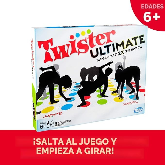Hasbro Gaming Twister Ultimate: Tapete más grande, más puntos de colores, juego familiar de fiesta para niños de 6+ años; compatible con Alexa (exclusivo de Amazon)