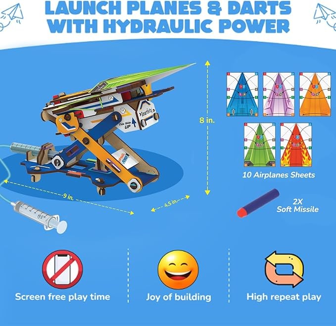 ACTION-PACKED FUN TIME: Let your child have a blast with this exciting mechanical machine that launches paper airplanes and darts into the air. Our step-by-step instructional manual ensures a deeply engaging DIY experience, perfect for kids to construct and enjoy their own uniquely awesome toy for hours. Designed for Boys and Girls for ages, 6,7,8,9,10,11,12,13,14 years old